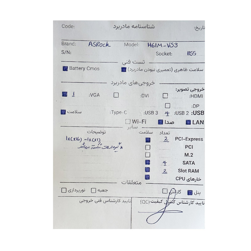 باندل مادربرد ASROCK H61M-VS3 + G620 *استوک