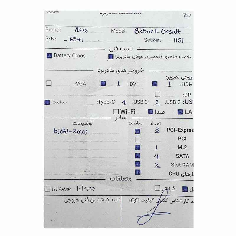 باندل مادربرد ASUS B250M Basalt + Intel Core i5 7400 استوک