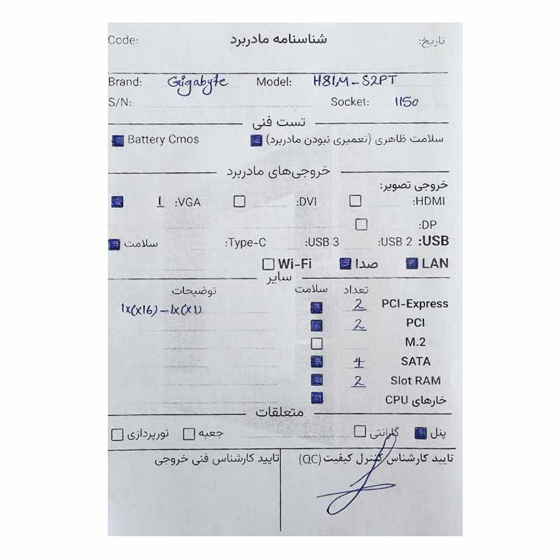مادربرد گیگابایت GIGABYTE GA-H81M-S2PT :
