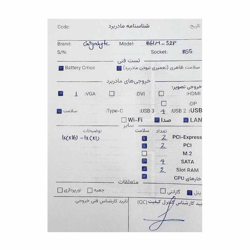 مادربرد گیگابایت GIGABYTE H61M-S2P :