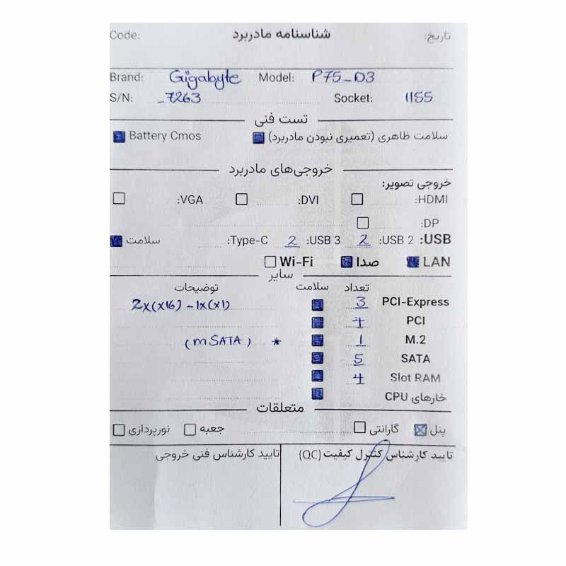 باندل مادربرد گیگابایت GIGABYTE P75-D3 + Core i5 2500 *استوک