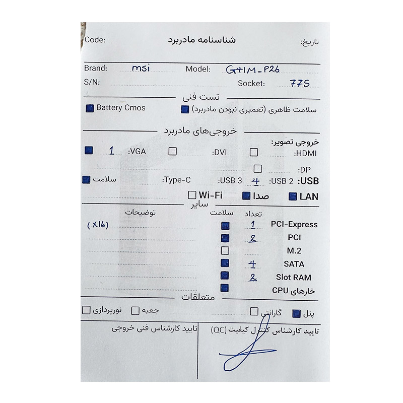 باندل مادربرد MSI G41M-P26 + Intel Pentium E5400 استوک