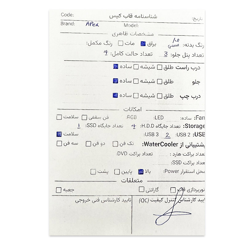 | مشخصات فنی کیس | ||||||||||||||||||||||||||||