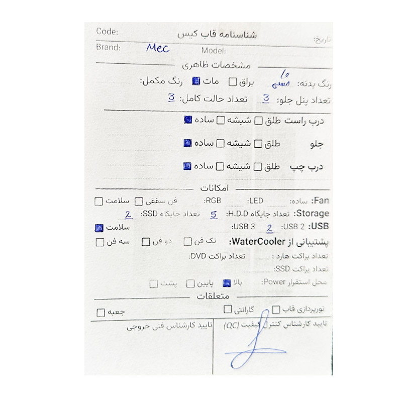 | مشخصات فنی کیس | ||||||||||||||||||||||||