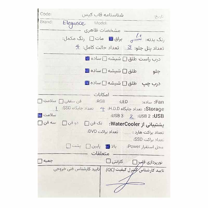 مشخصات فنی کیس | ||||||||||||||||||||||||||