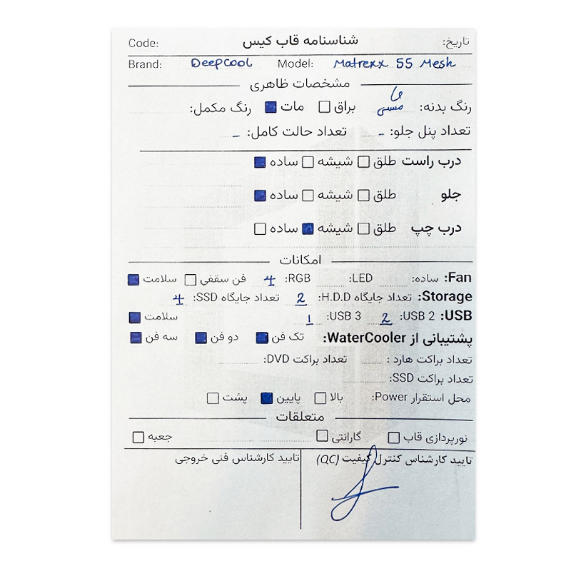 | مشخصات فنی کیس | ||||||||||||||||||||||||||