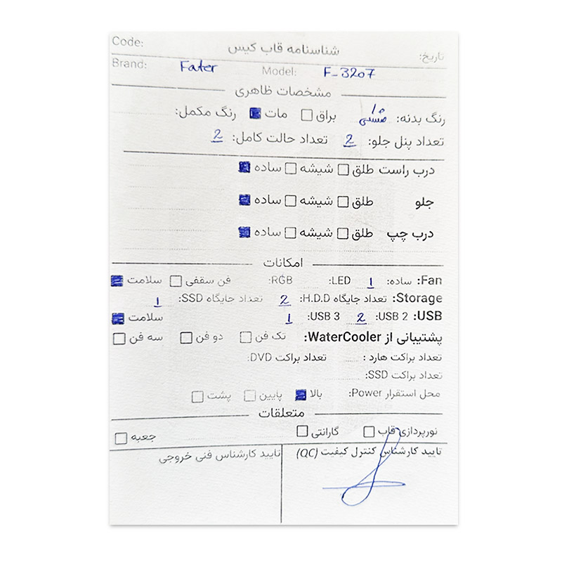 | مشخصات فنی کیس | ||||||||||||||||||||||||||