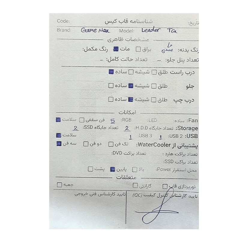 | مشخصات فنی کیس | ||||||||||||||||||||||||||||||