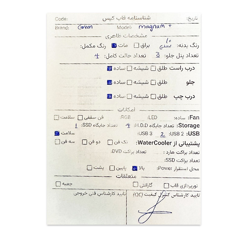 | مشخصات فنی کیس | ||||||||||||||||||||||||||||