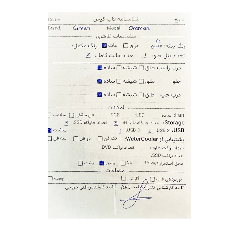 قاب کیس کامپیوتر گرین Green Oraman استوک