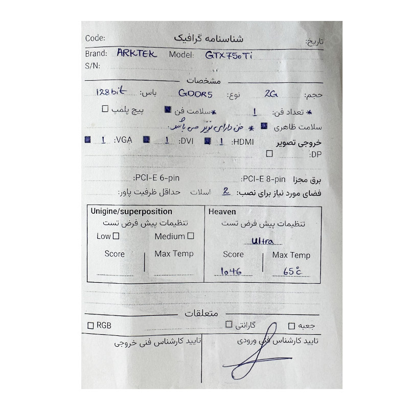 1 دیدگاه برای کارت گرافیک آرک تک Arktek GTX 750 Ti 2G GDDR5 *استوک