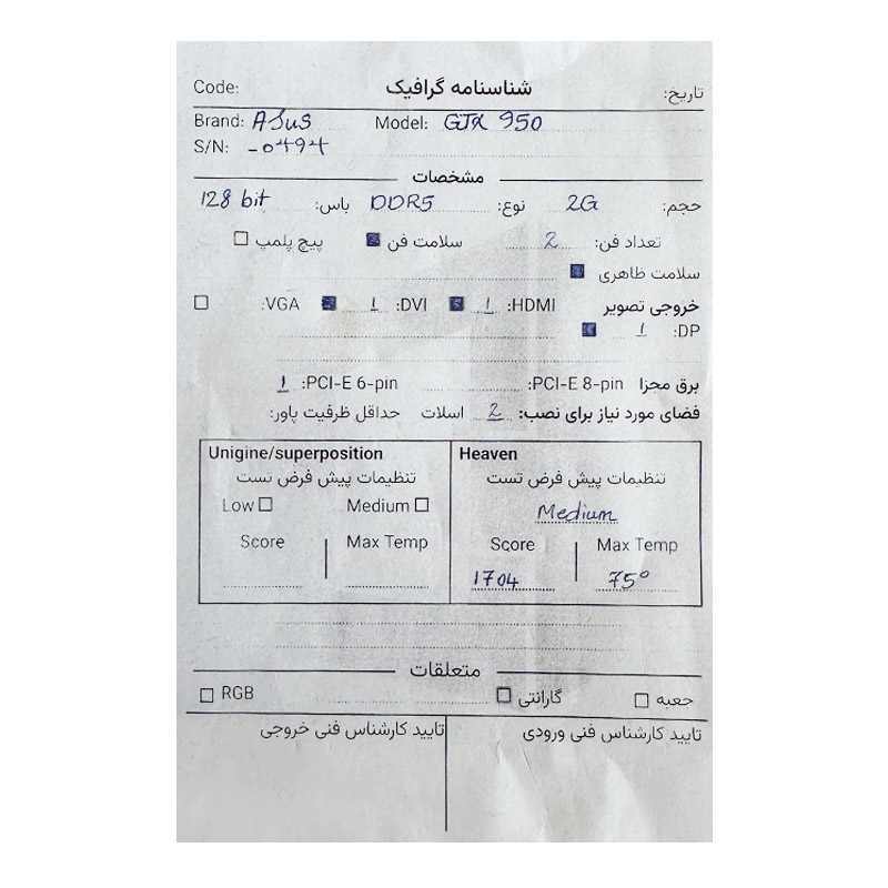 کارت گرافیک ASUS GeForce GTX 950 2G GDDR5 استوک