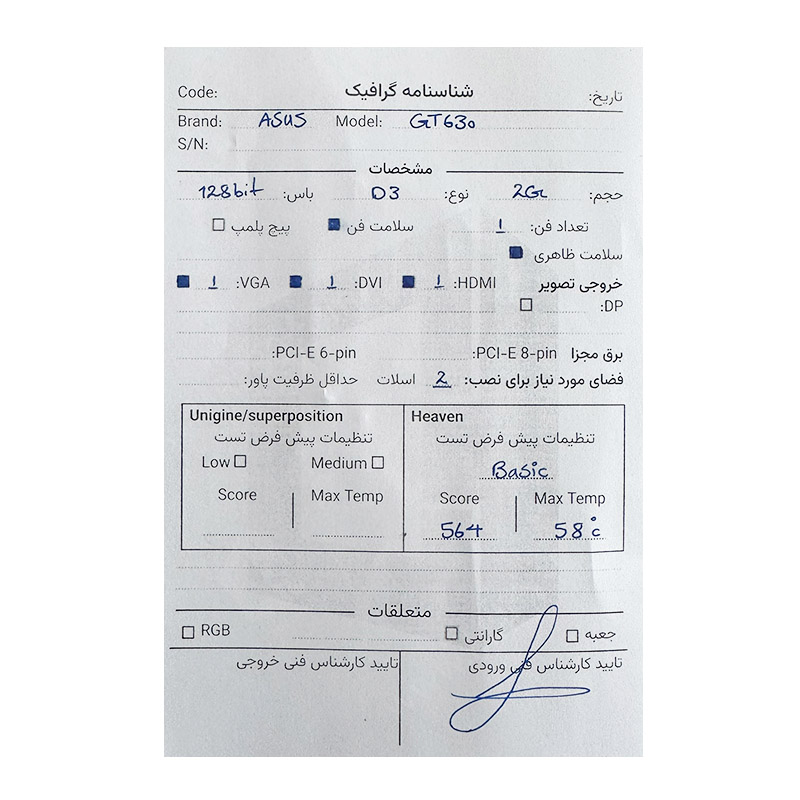 کارت گرافیک ASUS GT 630 2G DDR3 128 Bit استوک