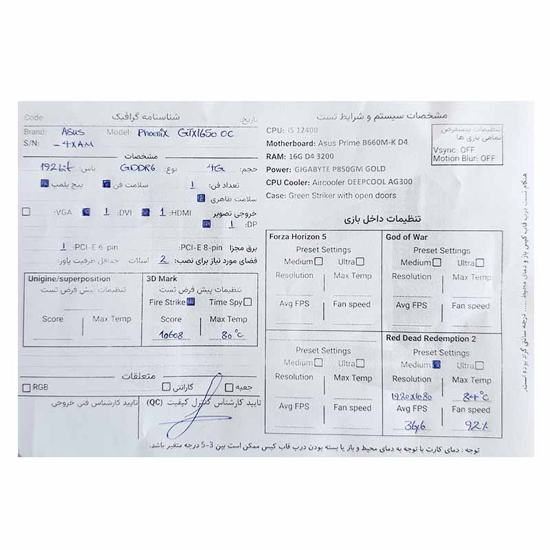 1 دیدگاه برای کارت گرافیک ASUS Phoenix Gtx 1650 OC 4G GDDR6 استوک