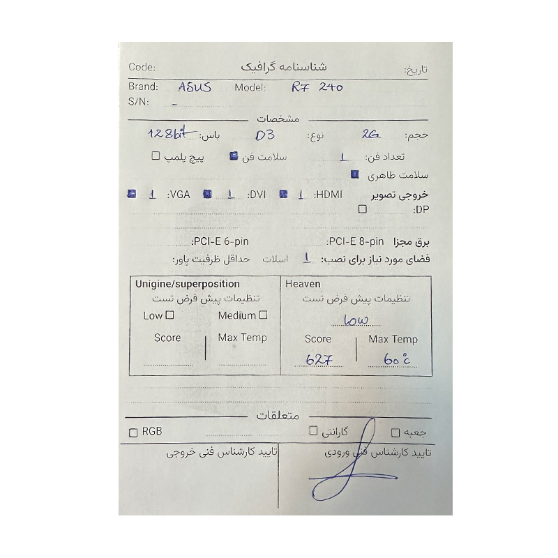 1 دیدگاه برای کارت گرافیک ایسوس ASUS R7 240 2G DDR3 128Bit استوک