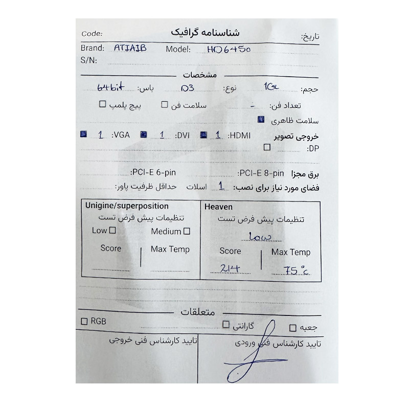 کارت گرافیک Ati AIB HD 6450 1G DDR3 64Bit استوک