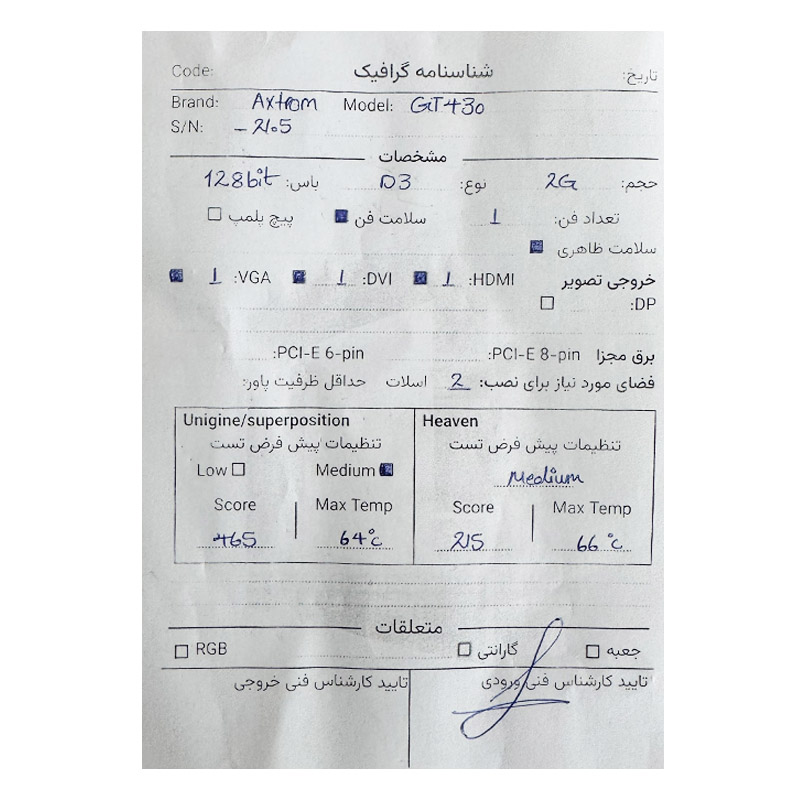کارت گرافیک آکستروم Axtrom GT 430 2GB DDR3 128Bit استوک