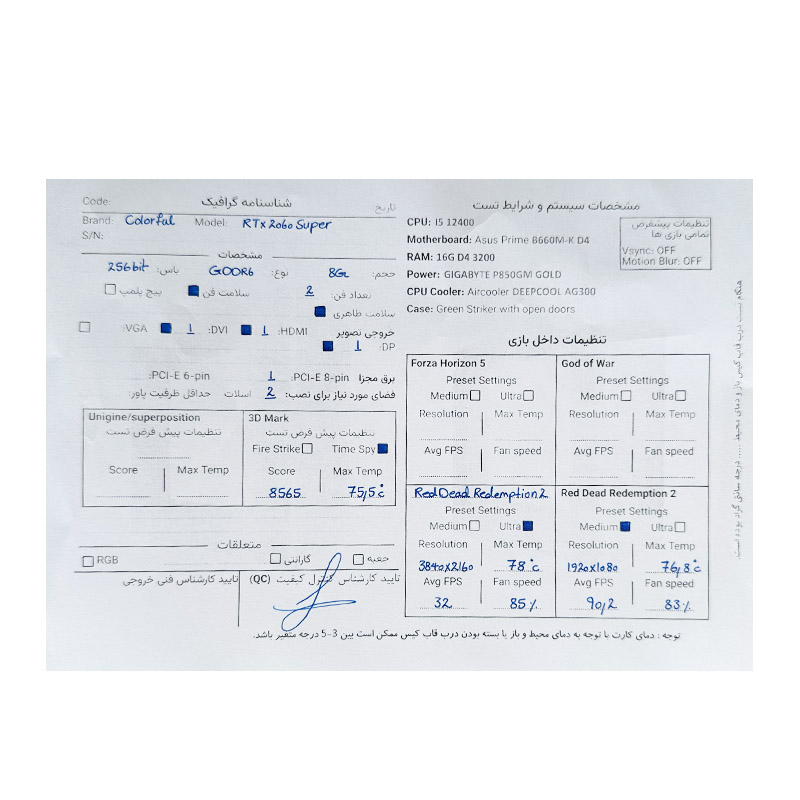 کارت گرافیک ColorFul RTX 2060 SUPER 8G GDDR6 256Bit استوک