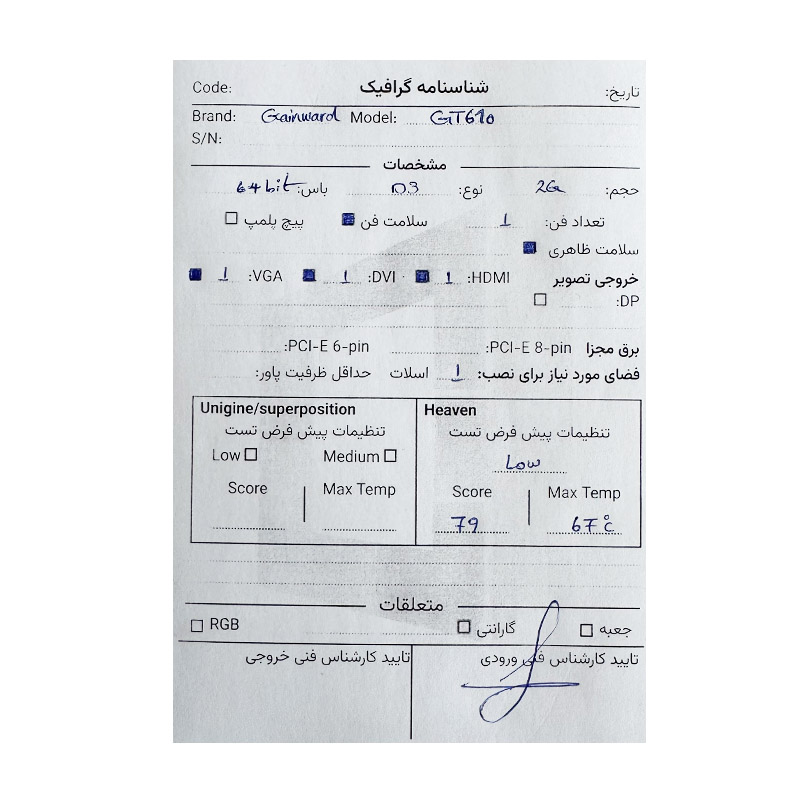 کارت گرافیک گینوارد Gainward GT 610 2G DDR3 استوک