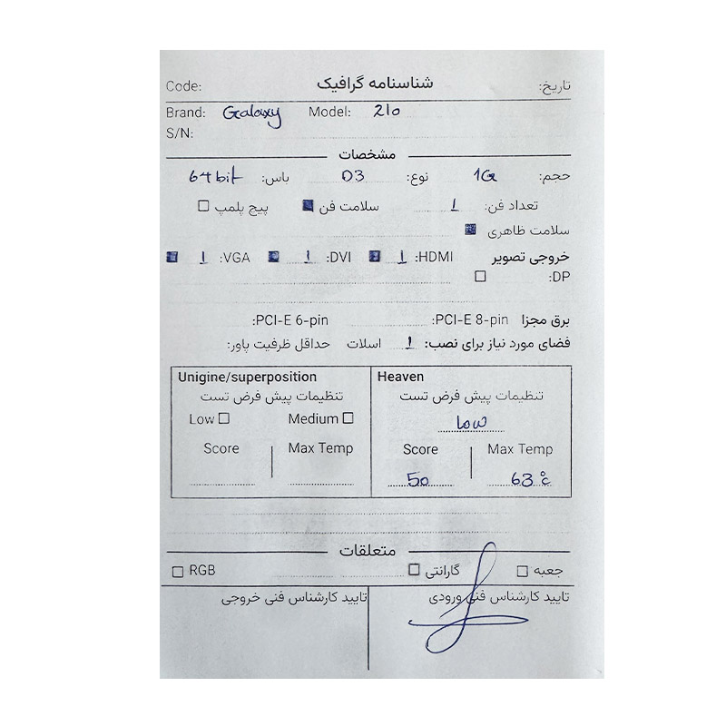 کارت گرافیک گالکسی Galaxy GT 210 1G DDR3 استوک