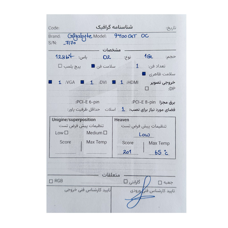 کارت گرافیک گیگابایت 9400 یک گیگ