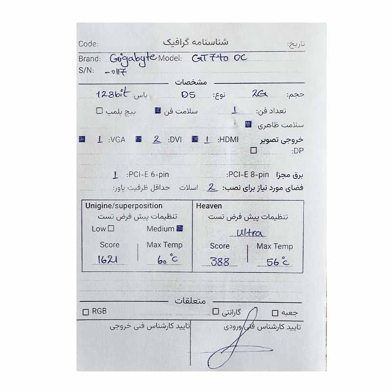 با توجه به قیمت کارت گرافیک 740 این کارت یکی از محصولات اقتصادی شرکت Gigabyte است که بر پایه تراشه NVIDIA GeForce GT 740 ساخته شده است. این کارت گرافیک با اورکلاک کارخانهای و حافظه GDDR5 برای کاربردهای عمومی و برخی از بازیهای سبک مناسب است. در ادامه مشخصات فنی این کارت گرافیک آورده شده است: