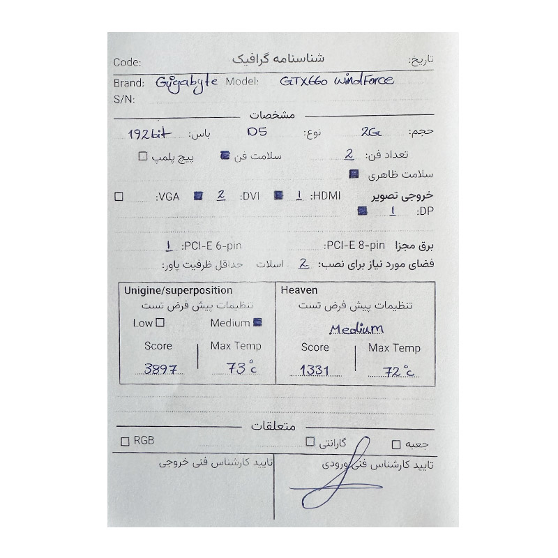 کارت گرافیک Gigabyte GTX 660 Windforce 2G GDDR5 استوک