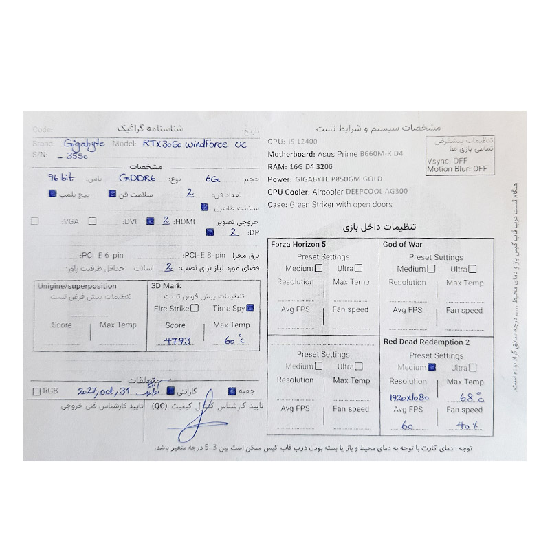 گرافیک گیگابایت Gigabyte Windforce RTX 3050 OC 6G GDDR6 استوک در حد نو گارانتی تا 1406/08