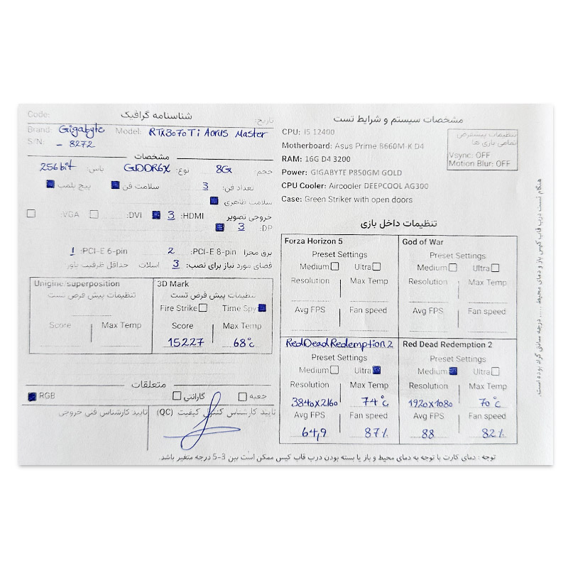 کارت گرافیک Gigabyte RTX 3070 TI Aorus Master 8G GDDR6X استوک