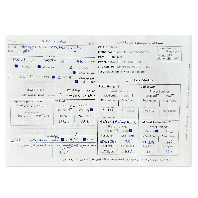 کارت گرافیک Gigabyte RTX 4060 TI Eagle 8G GDDR6 استوک گارانتی تا 1405/09