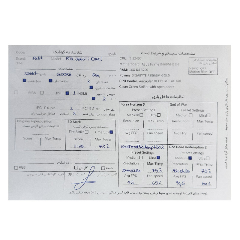 گرافیک Palit Geforce RTX 3060 Ti DUAL 8G GDDR6 استوک در حد نو