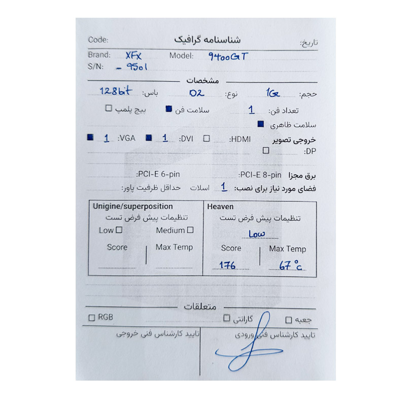 کارت گرافیک XFX 9400 GT 1G DDR2 128 Bit استوک