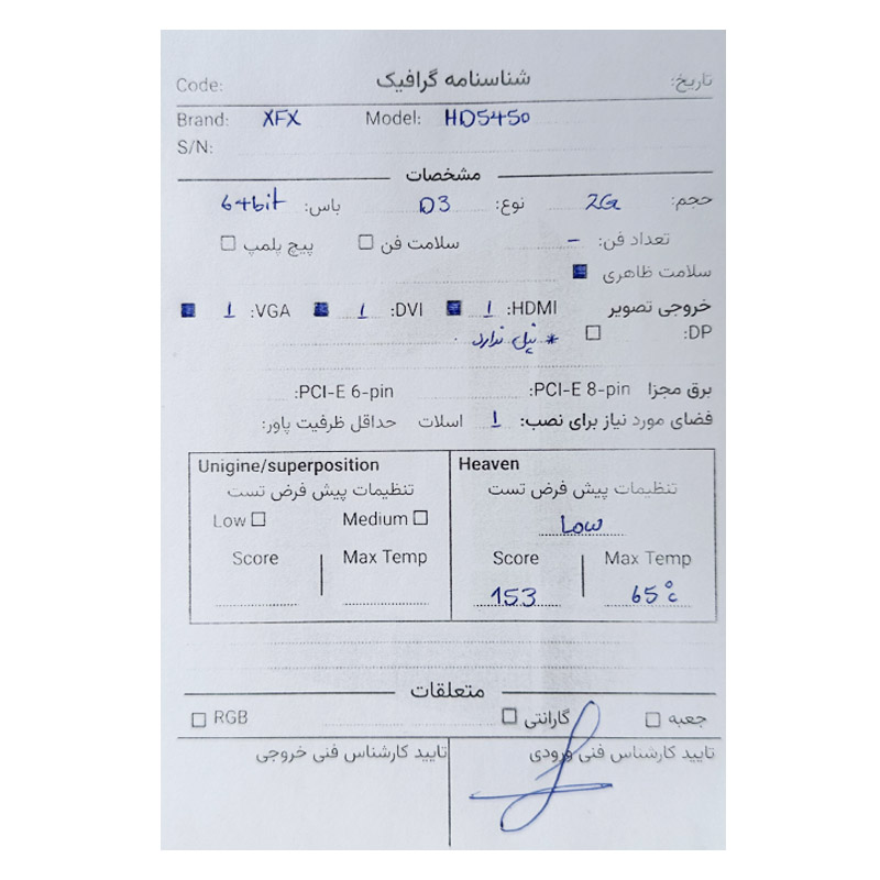 کارت گرافیک XFX HD 5450 2G DDR3 64Bit *استوک