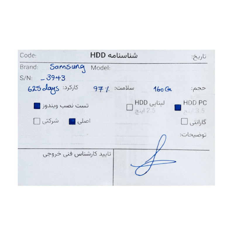 هارد اینترنال 160 گیگ سامسونگ Samsung 160GB 97 استوک