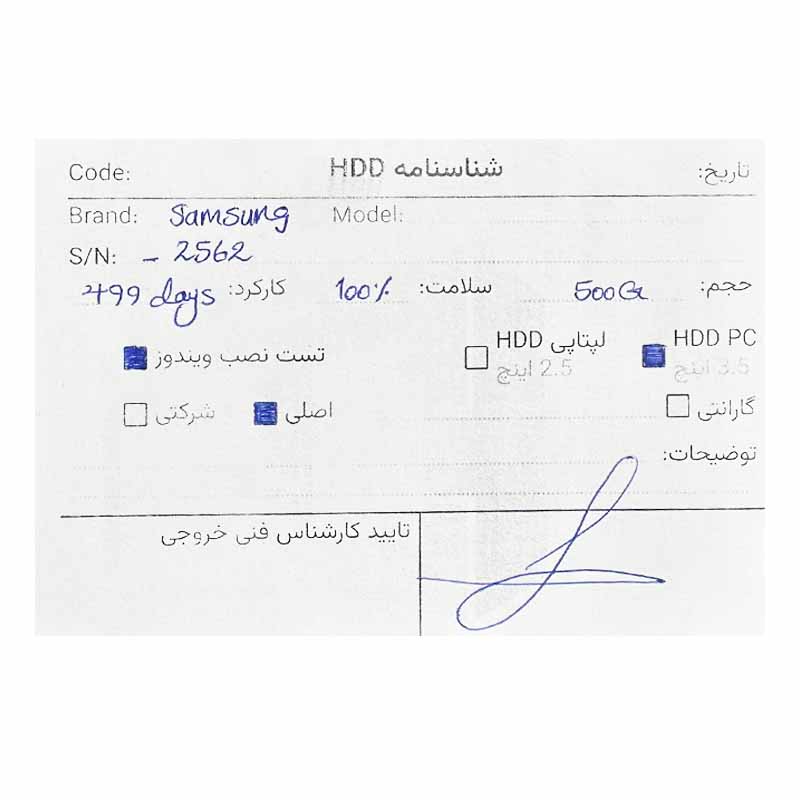 هارد 500 گیگ سامسونگ با ظرفیت 500 گیگابایت یک هارد دیسک داخلی است که برای ذخیرهسازی دادهها در سیستمهای کامپیوتری استفاده میشود.