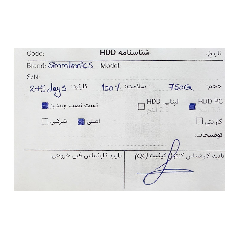 هارد اینترنال 750 گیگ Simmtronics 750GB استوک