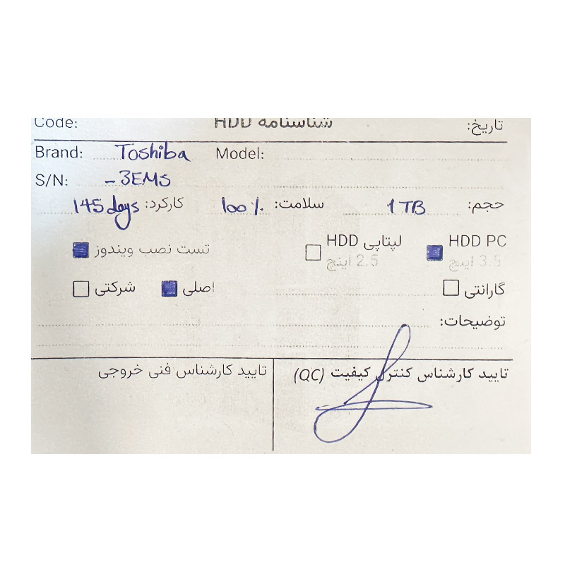هارد اینترنال 1 ترا توشیبا Toshiba 1TB DT01ACA100 استوک