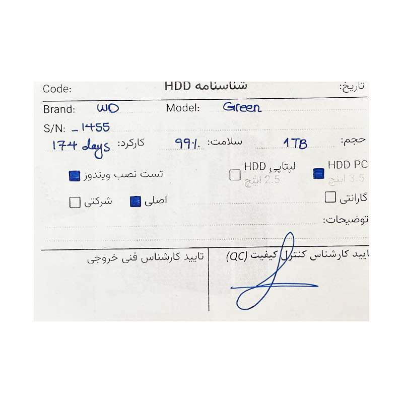 هارد اینترنال وسترن 1 ترا WD 1TB Green WD10EADS 99 استوک