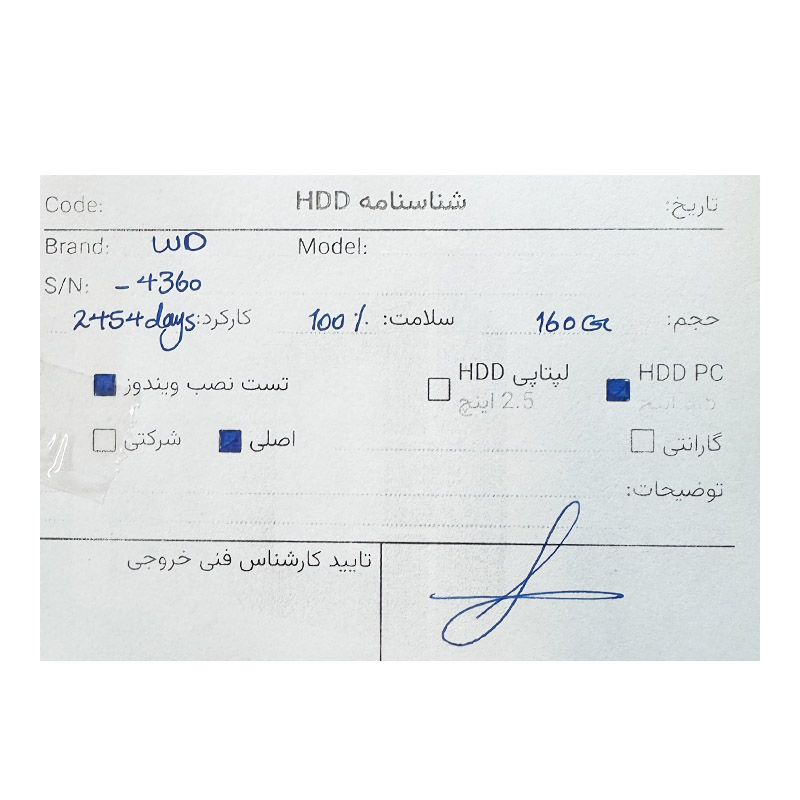 هارد اینترنال 160 گیگ وسترن Western Digital 160GB استوک