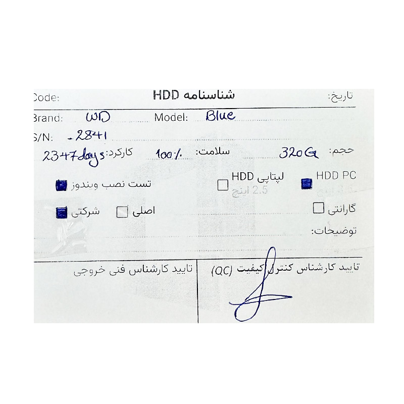 هارد اینترنال 320 گیگ وسترن Western Digital Blue 320GB استوک شرکتی