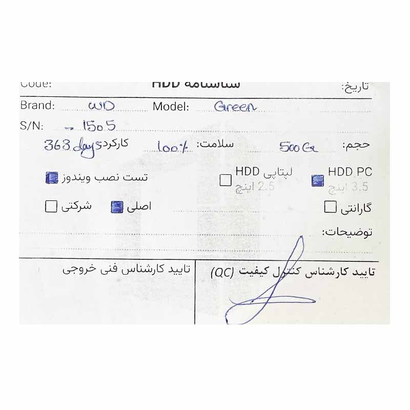 هارد اینترنال 500 وسترن Western Green 500GB WD5000AZRX استوک