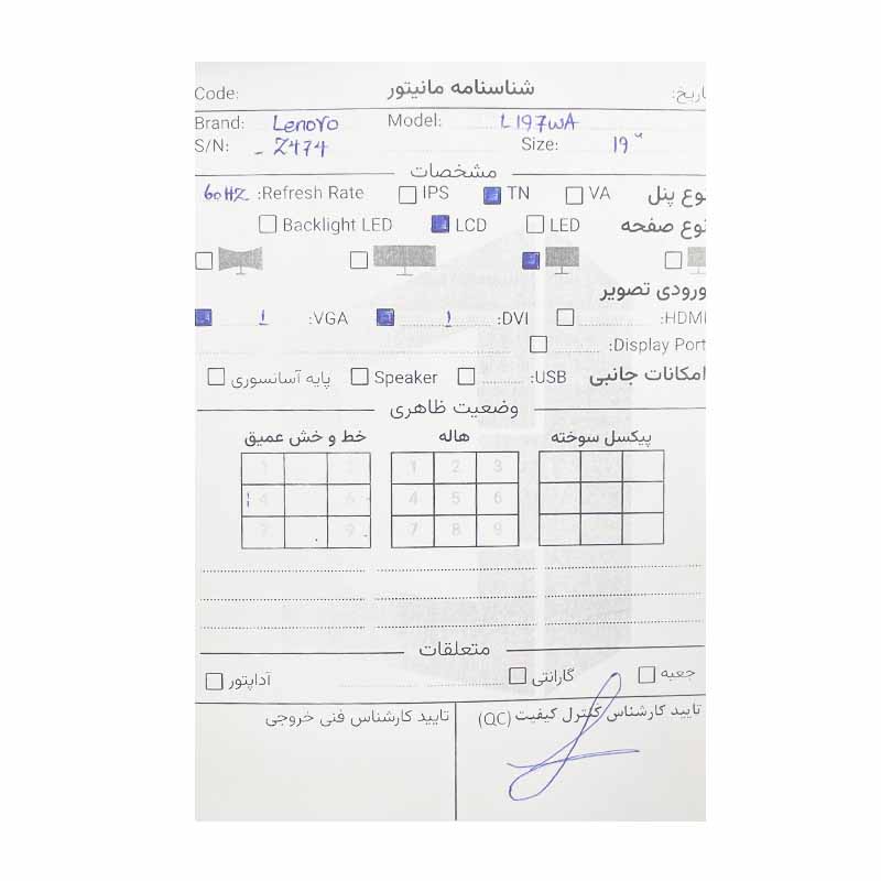 مانیتور 19 اینچ لنوو Lenovo L197WA 19 Inch *استوک