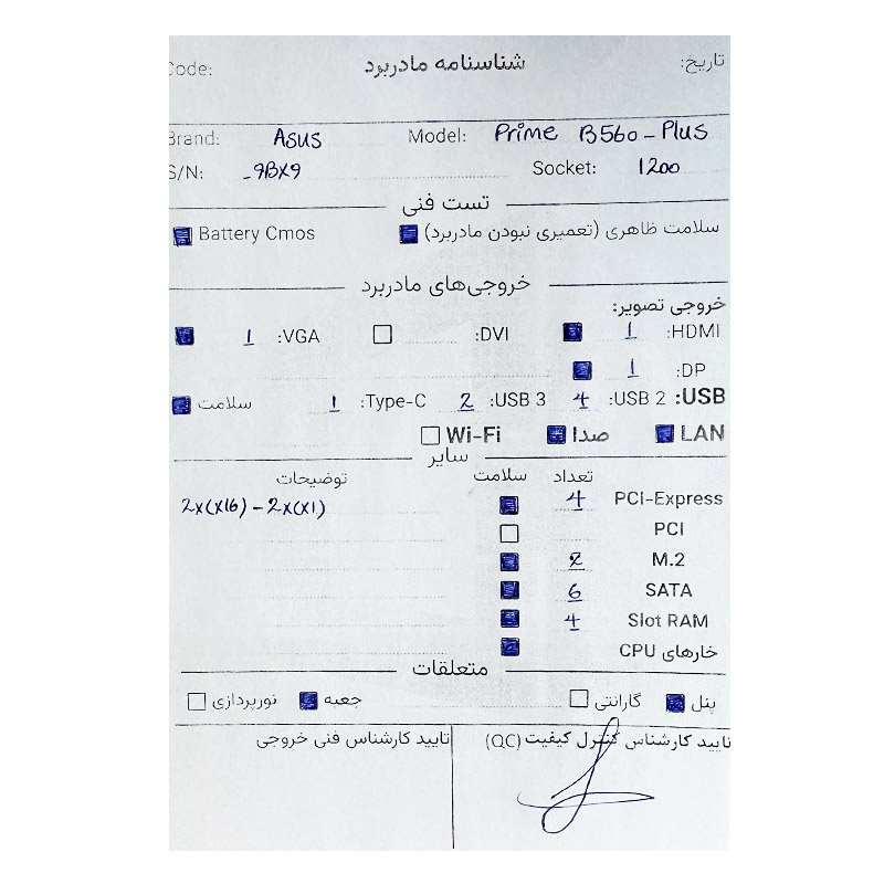مادربرد ایسوس ASUS Prime B560 Plus استوک