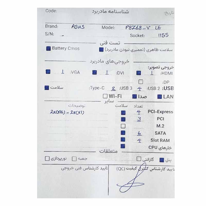 مادربرد ایسوس ASUS P8Z68-V LE استوک