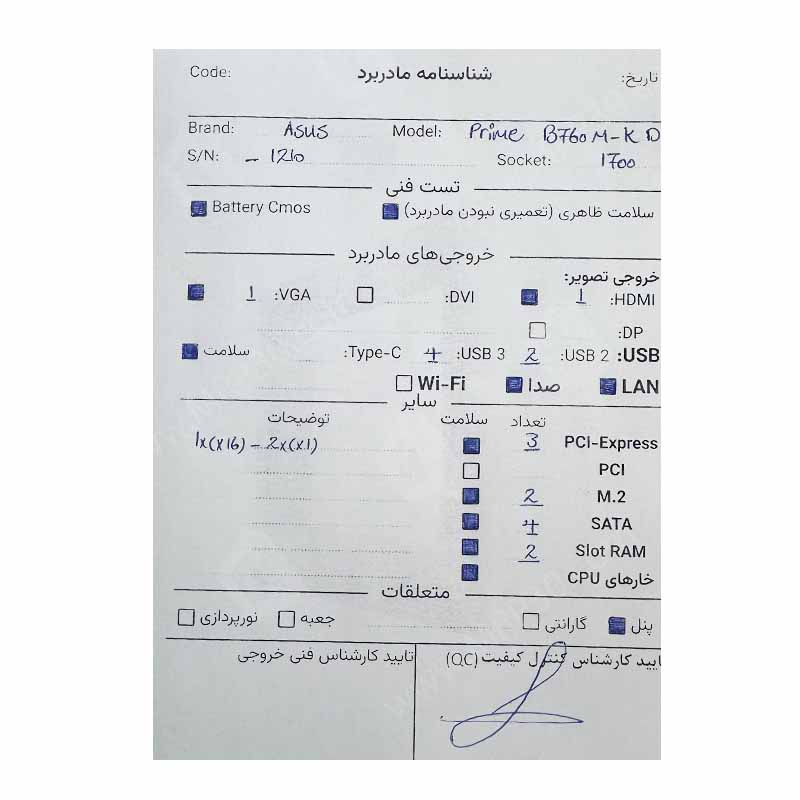 مادربرد ایسوس Asus Prime B760M-K DDR4 استوک