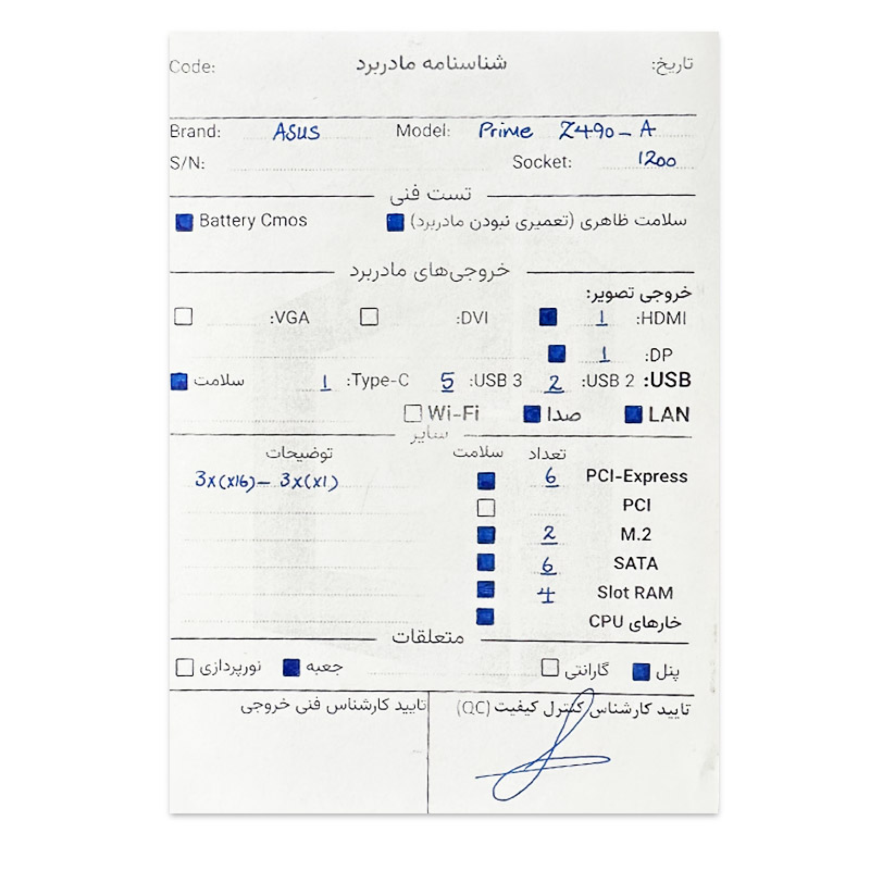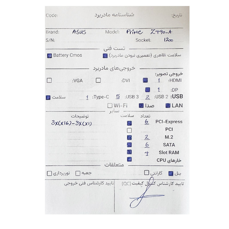 مادربرد ایسوس ASUS Prime Z490-A استوک در حد نو