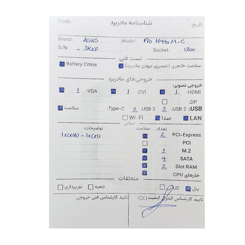 مادربرد ایسوس ASUS Pro H410M-C استوک