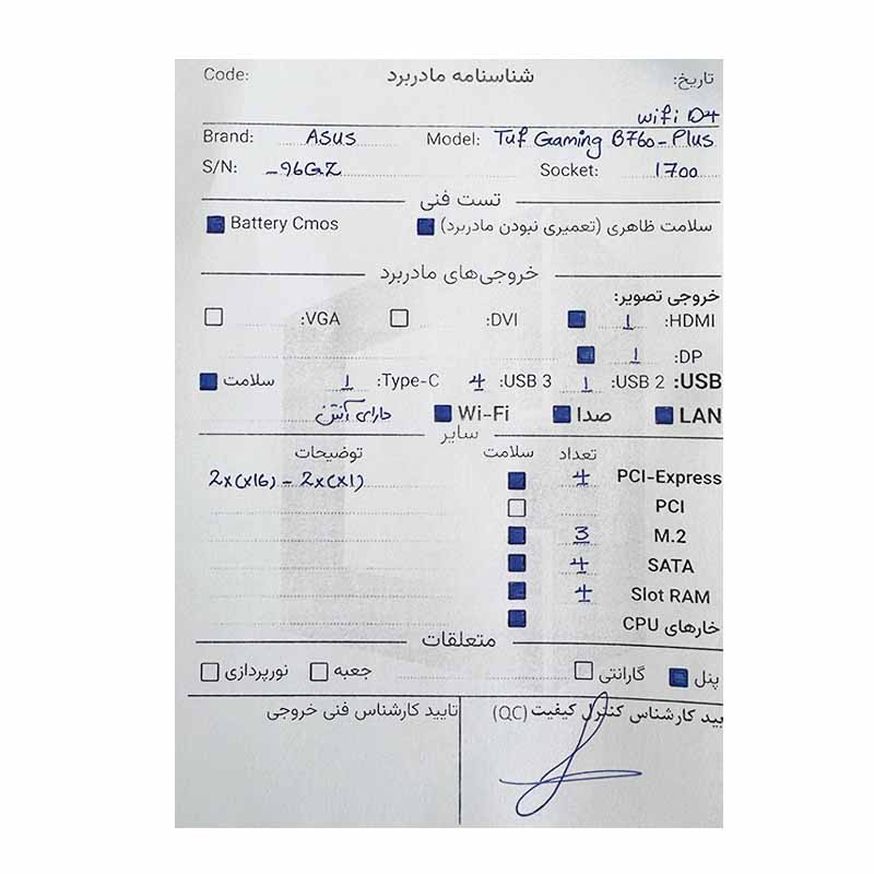 مادربرد ایسوس Asus Tuf Gaming B760 Plus Wifi DDR4 استوک