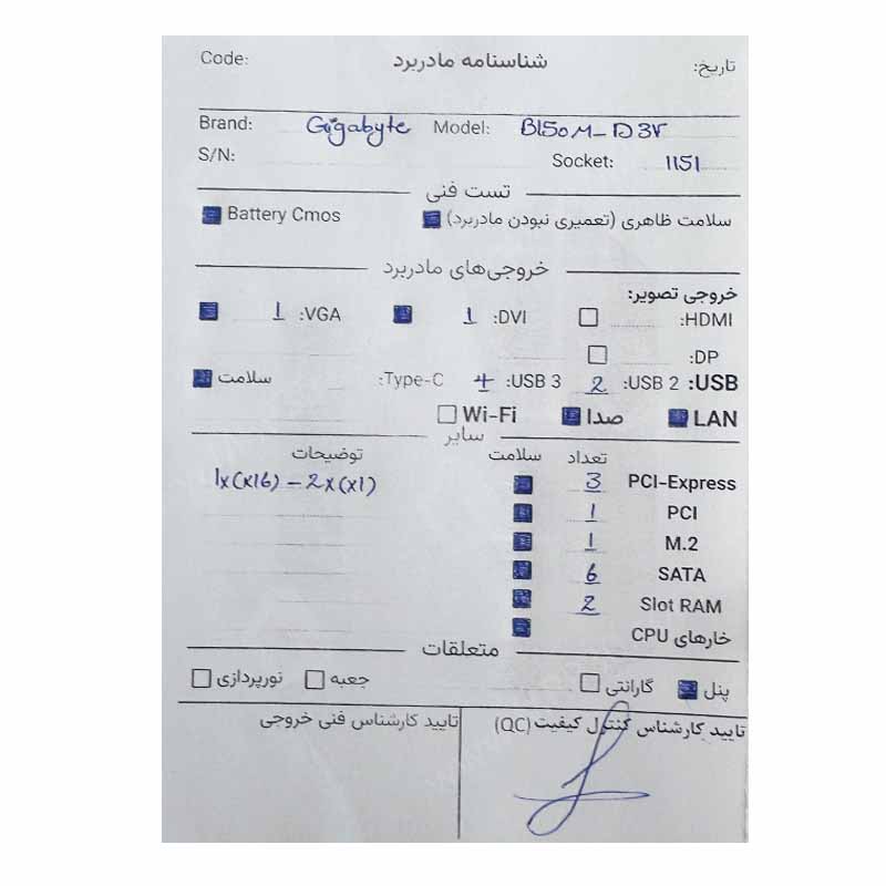 مادربرد ایسوس Gigabyte B150M-D3V استوک