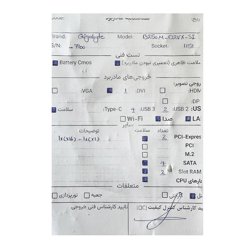 مادربرد گیگابایت GIGABYTE B250M-D2VX-SI استوک